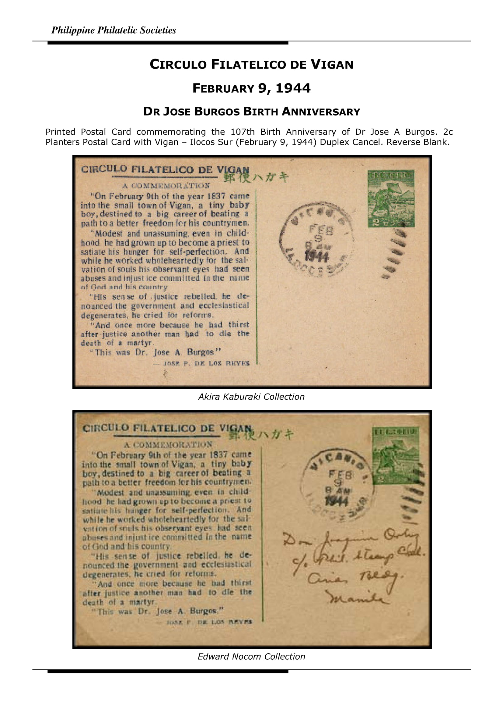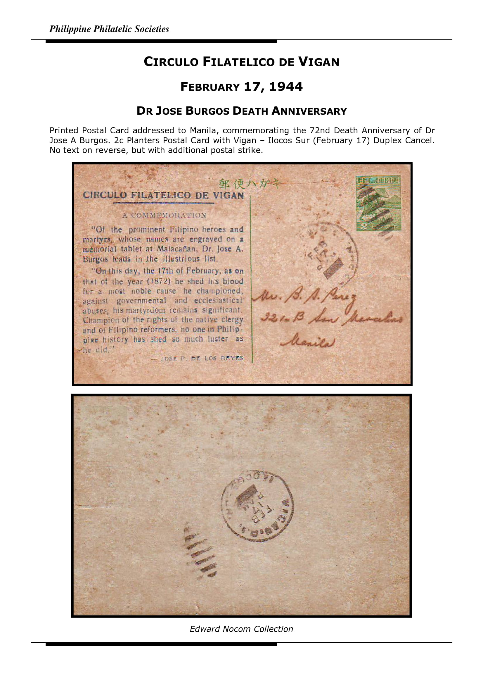 Circulo Filatelico de Vigan