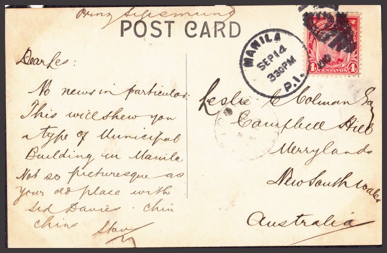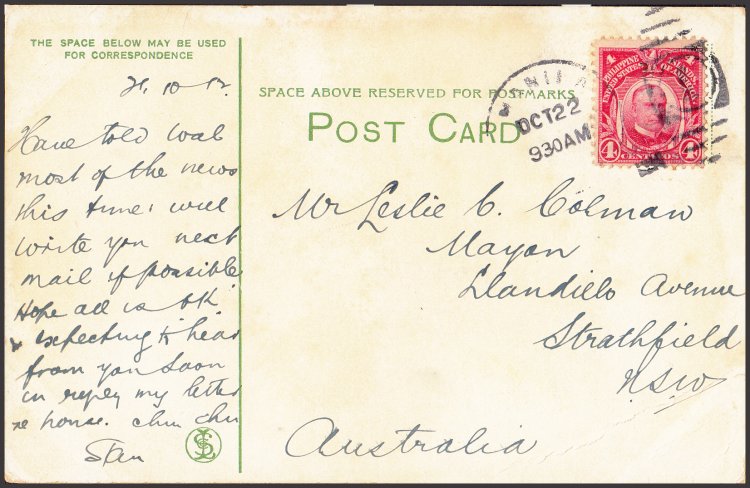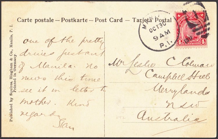 from Binondo to San Isidro. Official Binondo Handstamp on bottom left with Manila - Star (29