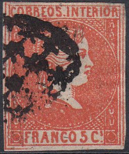 Used, Circle of Dots Cancel. Good colour, early impression. Four margins, a