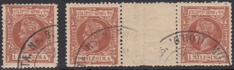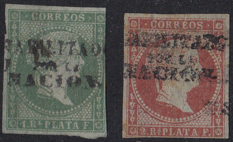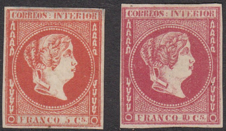 Parrilla Cancel. Fresh colour on both stamps. Tight margins on mint stamp,