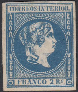 Scott 17. 2r Blue. Mint (Dry OG, HR). Fresh colour with three
