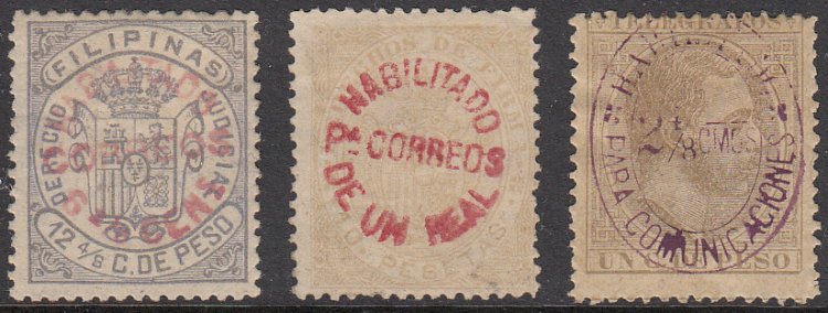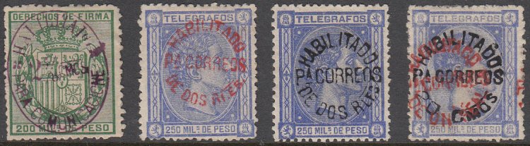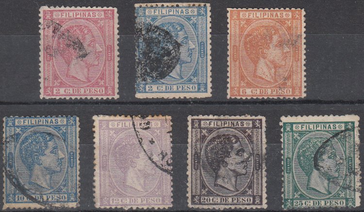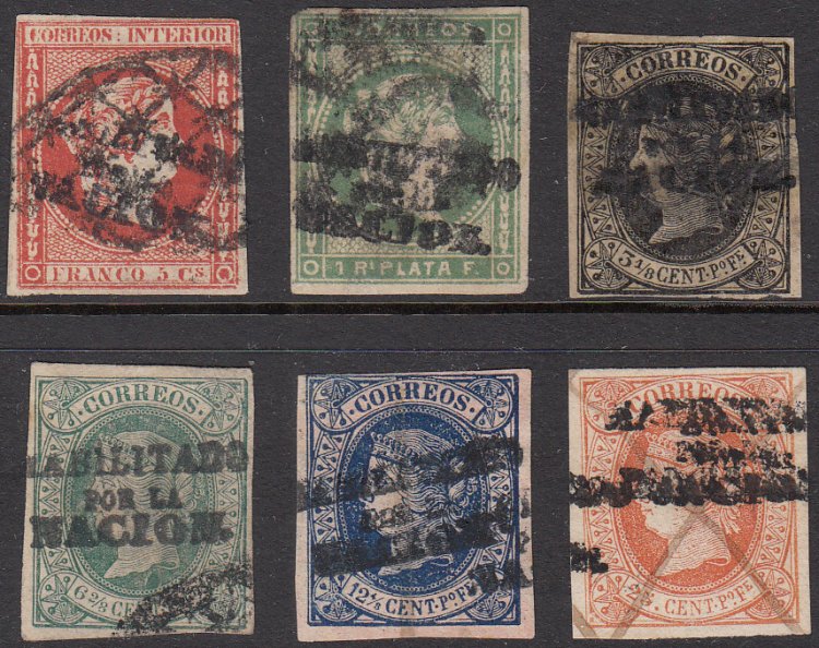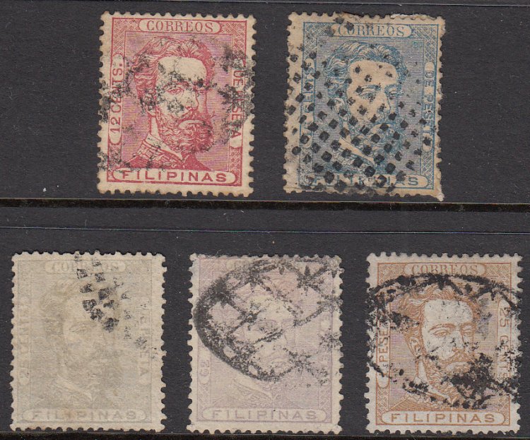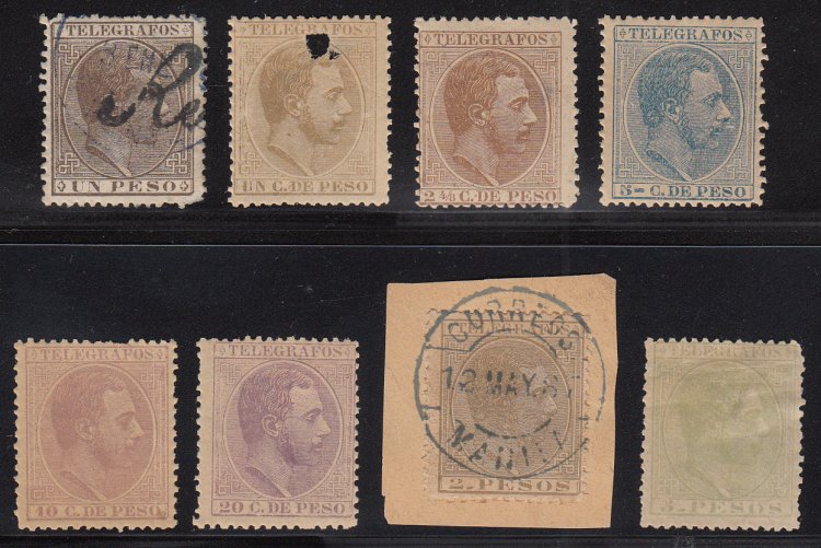 Edifil 5, 9, 11-12, 15-16, 19, 21. 1880-1888 Telegraph