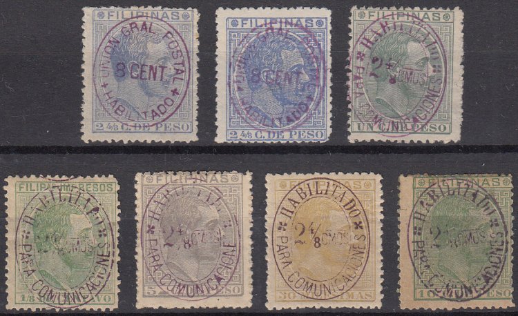Edifil 8F, 8J (5), 8K, 8L, 8R. 1881 Telegraph Stamps.