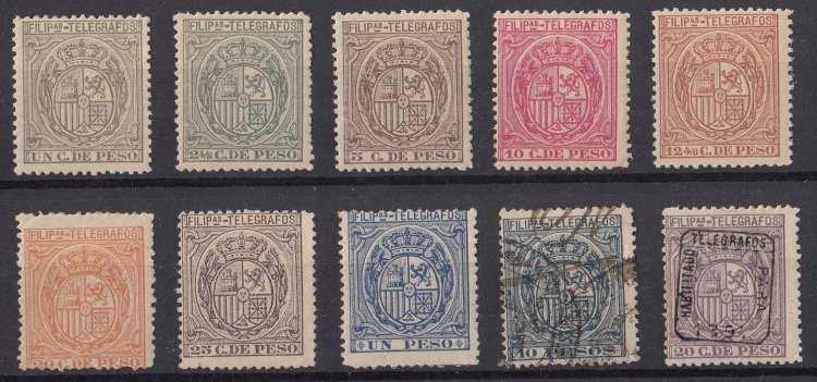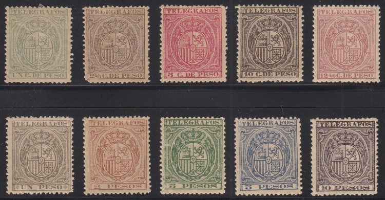 Edifil 37-46. 1892 Telegraph Stamps. Mint (OG/NG, HR); Used.