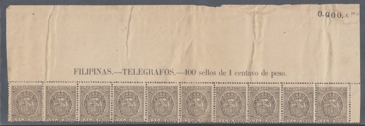 Edifil 59 (10). 1896 Telegraph Stamp. Mint (OG, NH/HR). Top