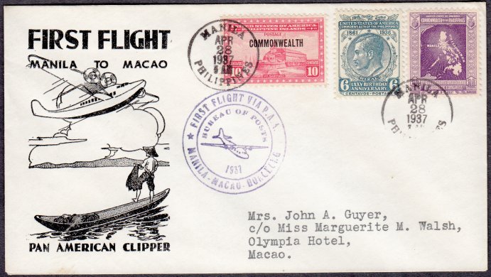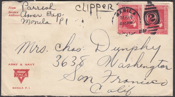 Pampanga to Bontoc, Mountain Province. With Fort Stotsenburg, Pampanga (18 March 1932) Duplex Cancels.