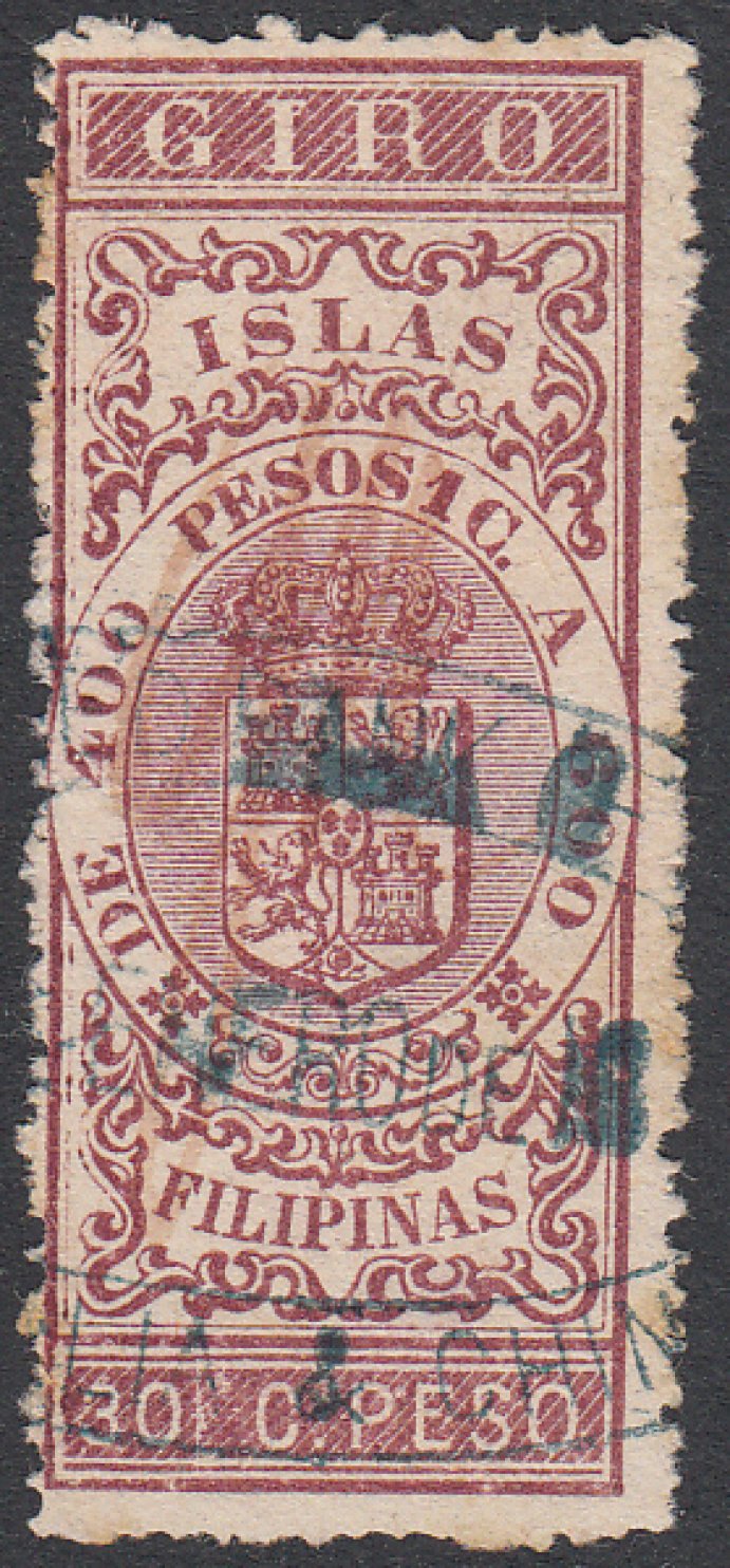 the Collector of Internal Revenue. Known to exist on Timbre Movil stamps so unusual usage on a Giro Stamp. Very