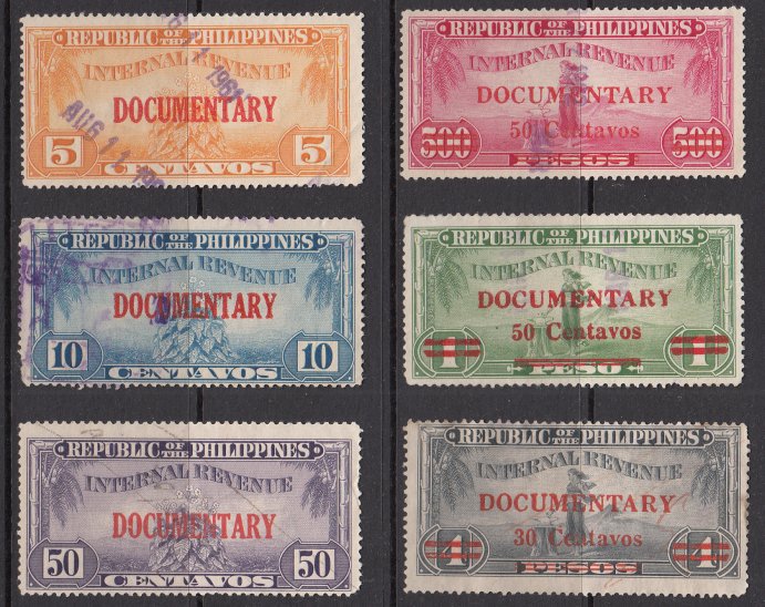 50c Documentary Stamp. Stamps with punch cancels or manuscript (pen) notations.