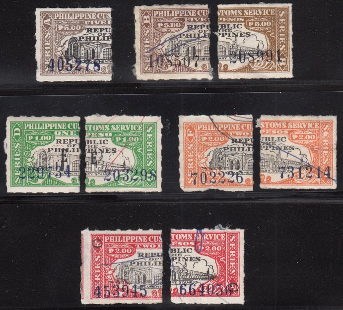 Customs Stamps. Series A, B, D, F most