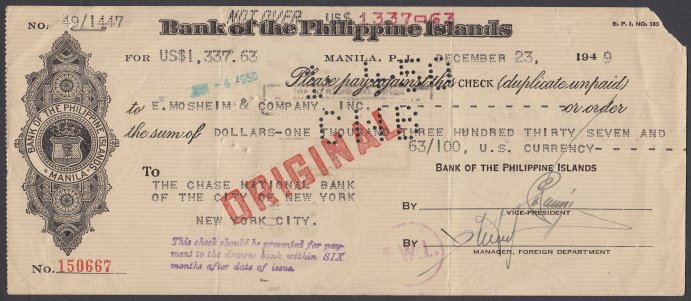 BPI Check. Bank of the Philippine