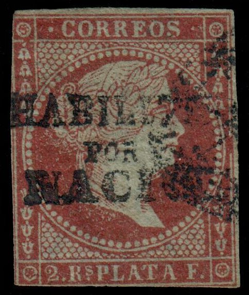 Parrilla cancel. Tight margins. Good colour, lighter shade. Overprinted