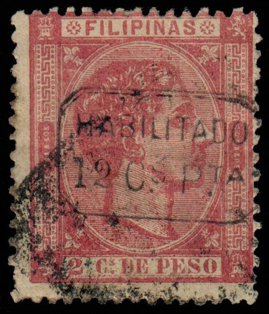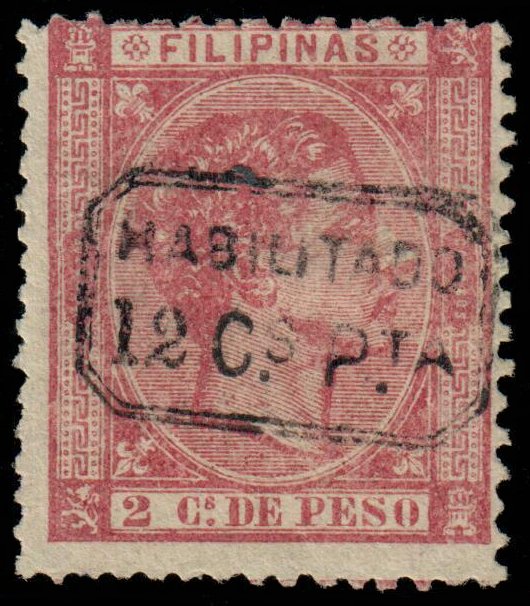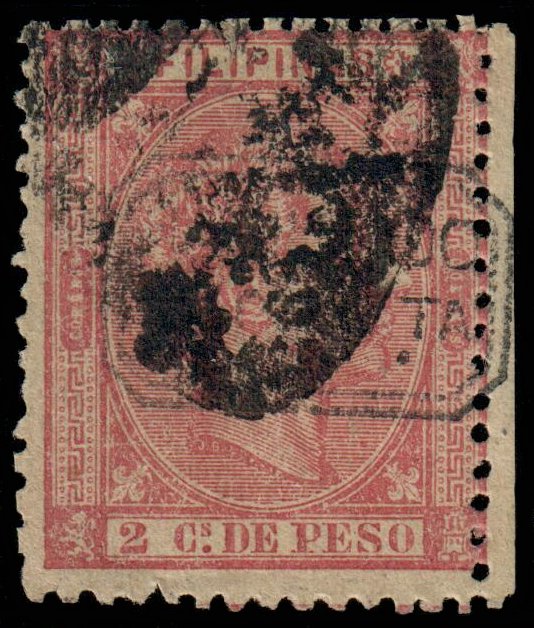 Manila. Centred top right. Decent colour. Rough or blunt perfs. Minor tone