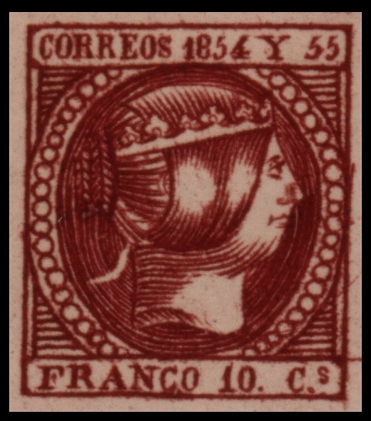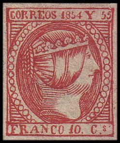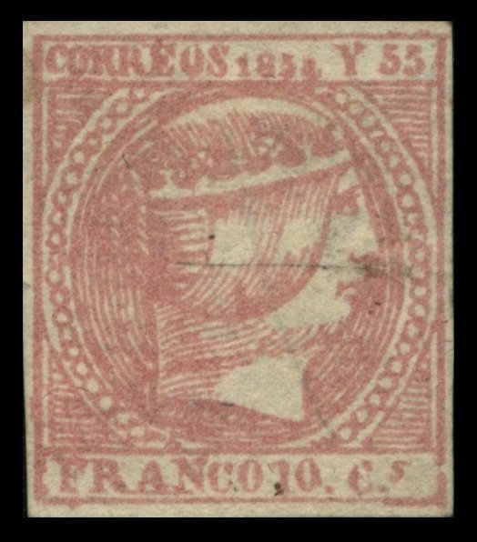 rose or carmine. The '4' in '1854' is much smaller in comparison to the other