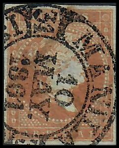 wider than the genuine cancellations. Cancelled '10 May 1861'. Gooding #9F2 Bogus