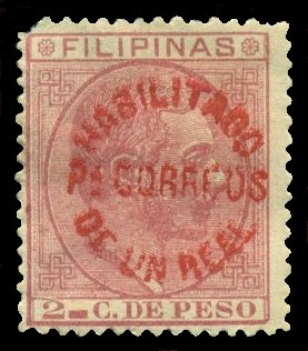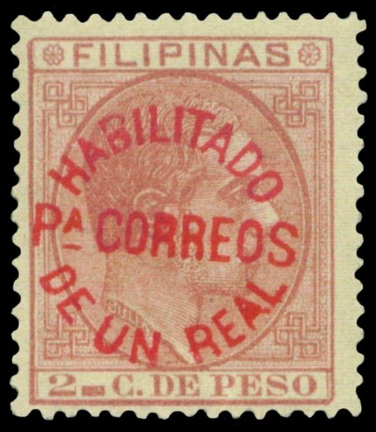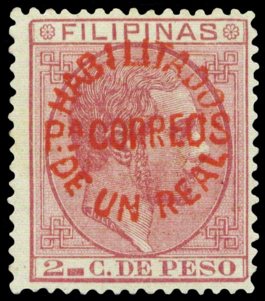Scott # 103 June 4, 1883 1r Red Surcharge on 2c Carmine Surcharged on 2c carmine King Alfonso XII