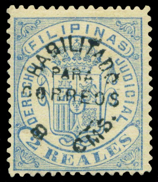 Scott # 116 April 1881 8c Black Surcharge on 2r Blue Surcharged on 2r blue Derecho Judicial Fiscal