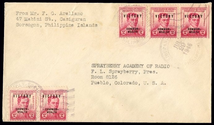 letters PHIL in PHILIPPINES. Scarce cancel and usage, a stunning presentation