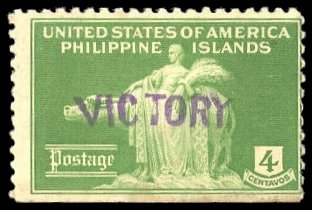1944 2c Rose Rizal OB issue. Left margin single with Victory handstamp.