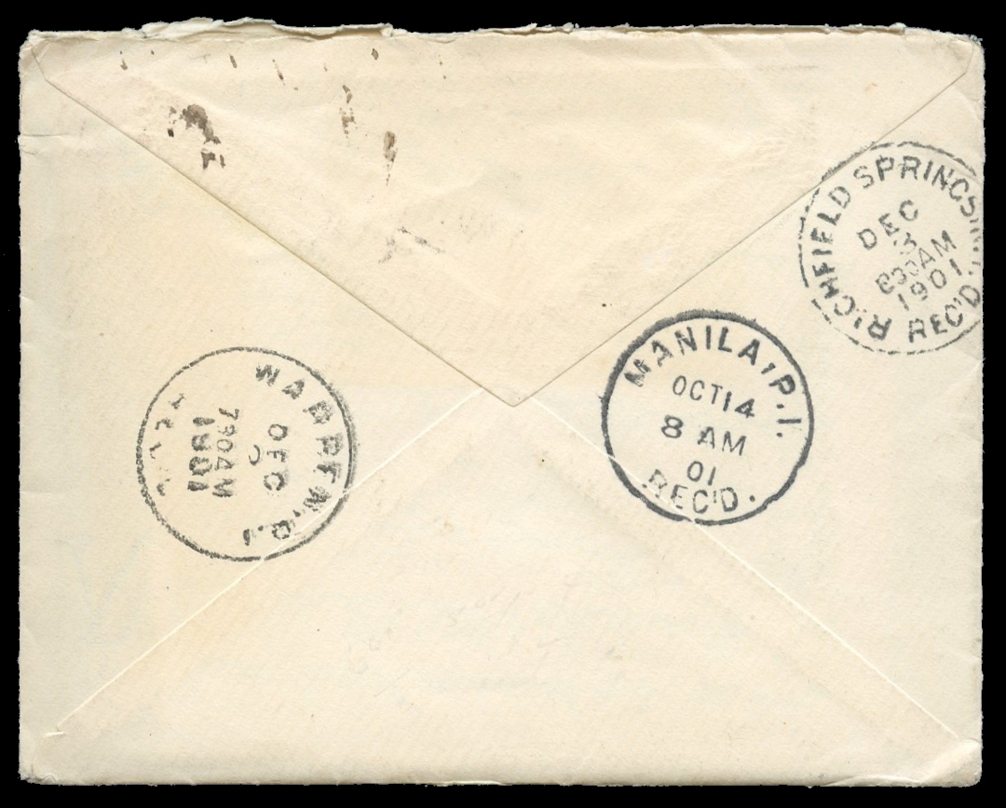 July 1900) receiving circular date backstamp. Roughly opened on left and