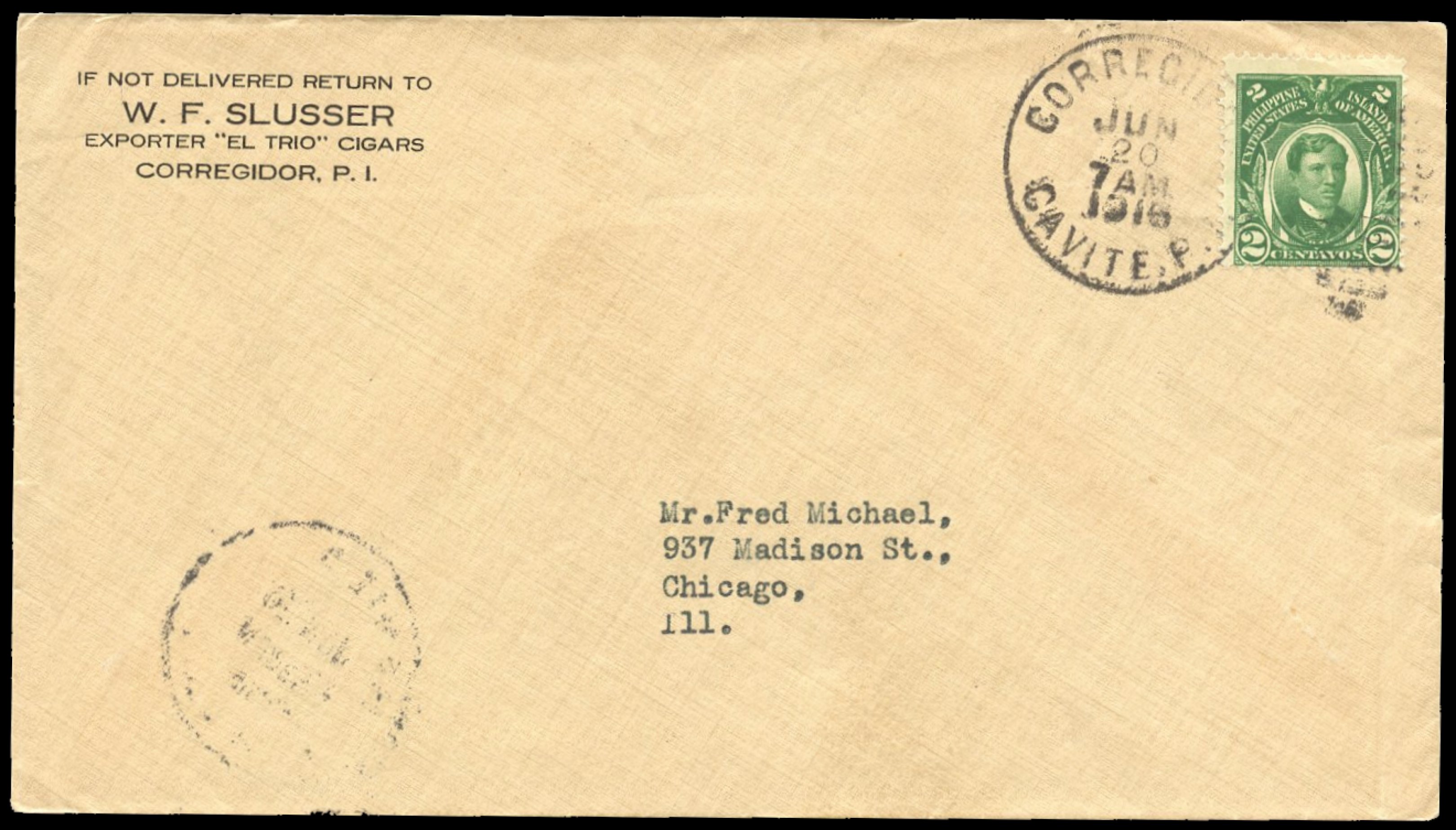 Registered Cover Front from Zamboanga to Chicago, Illinois, USA. Nine 2c