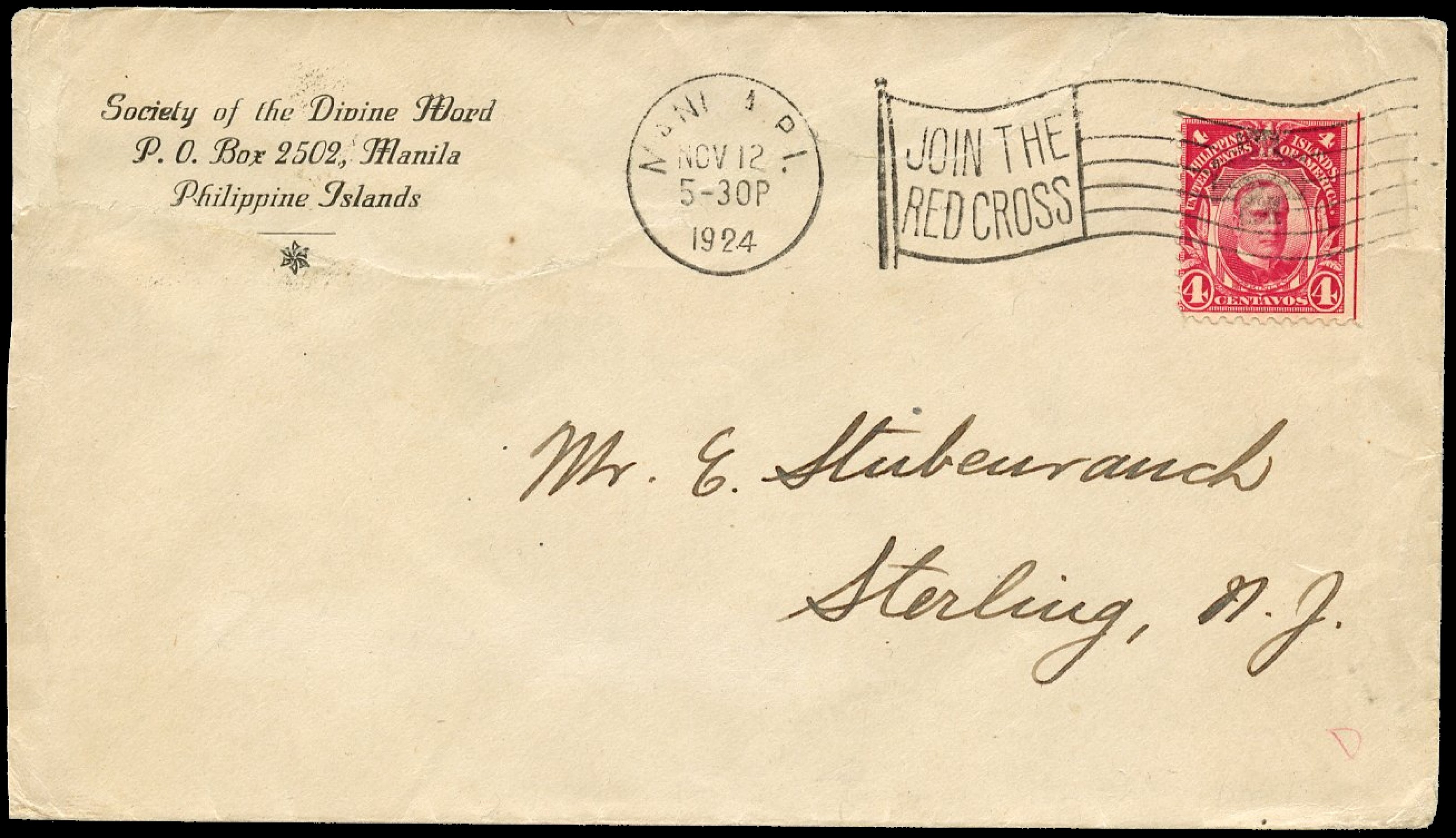 12487) applied in Manila. Horizontal filing fold on bottom and somewhat heavy