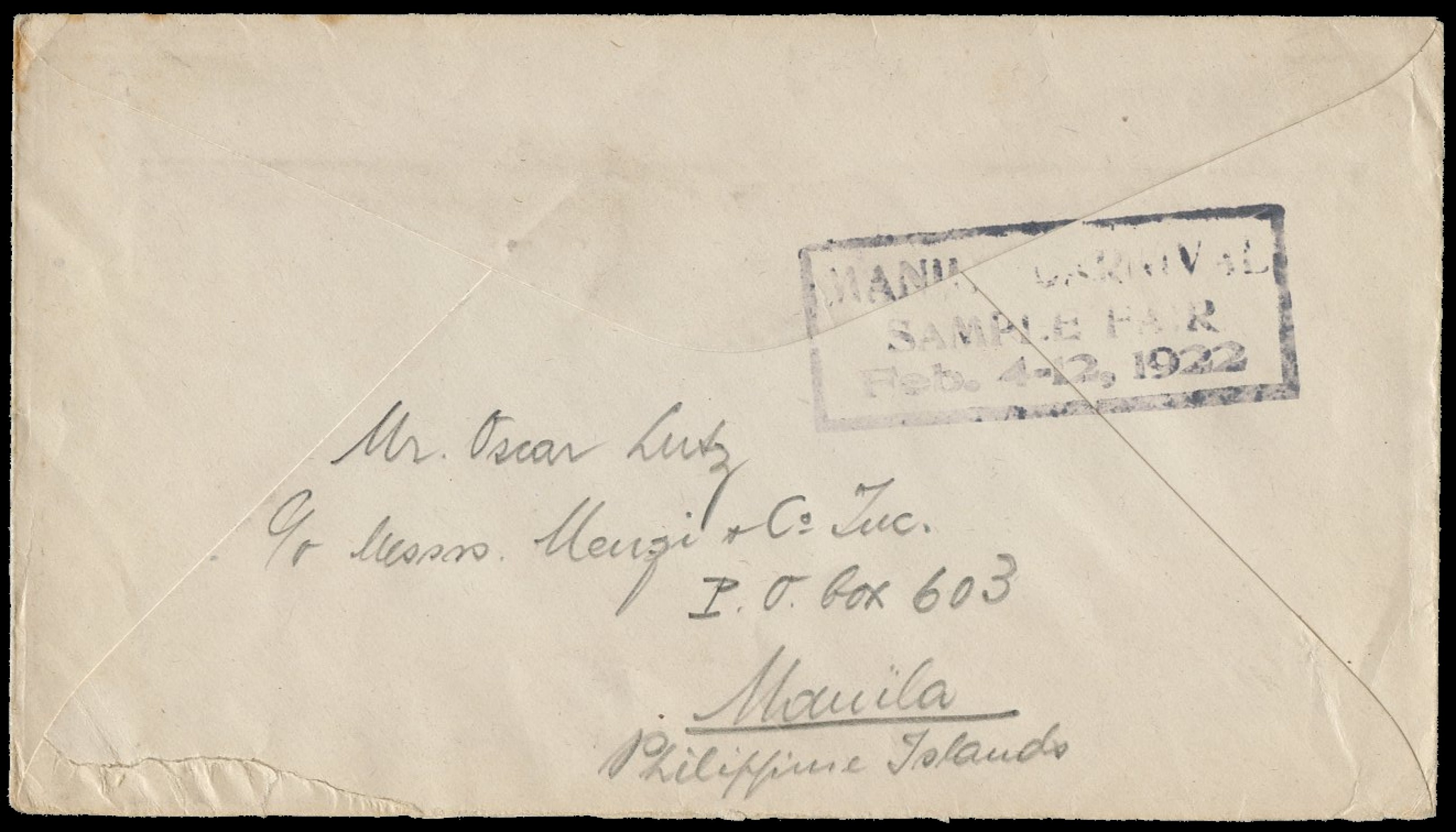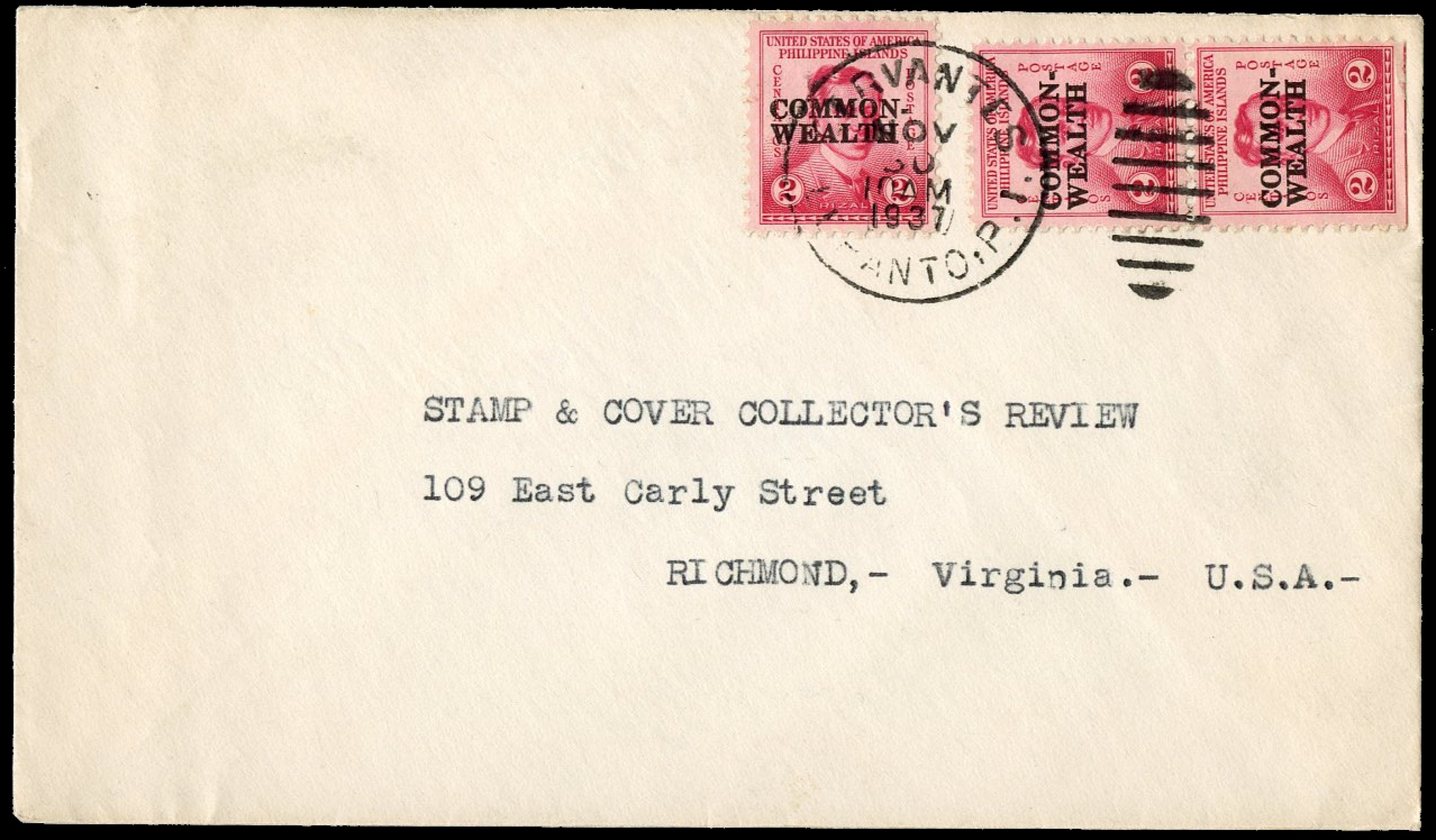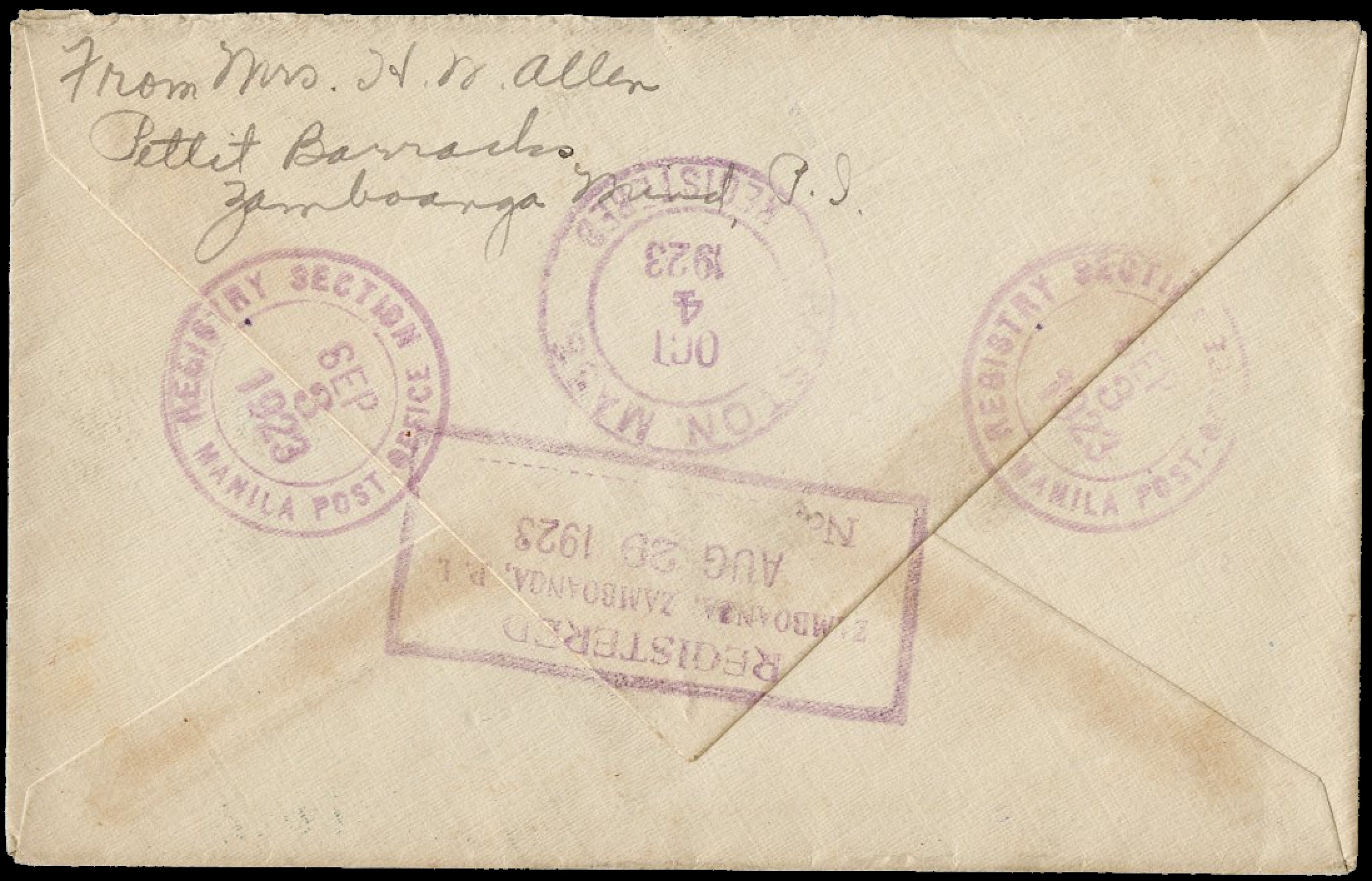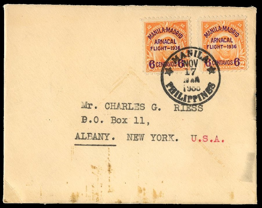 1938) Registration handstamp on front and reverse. Manila Post Office