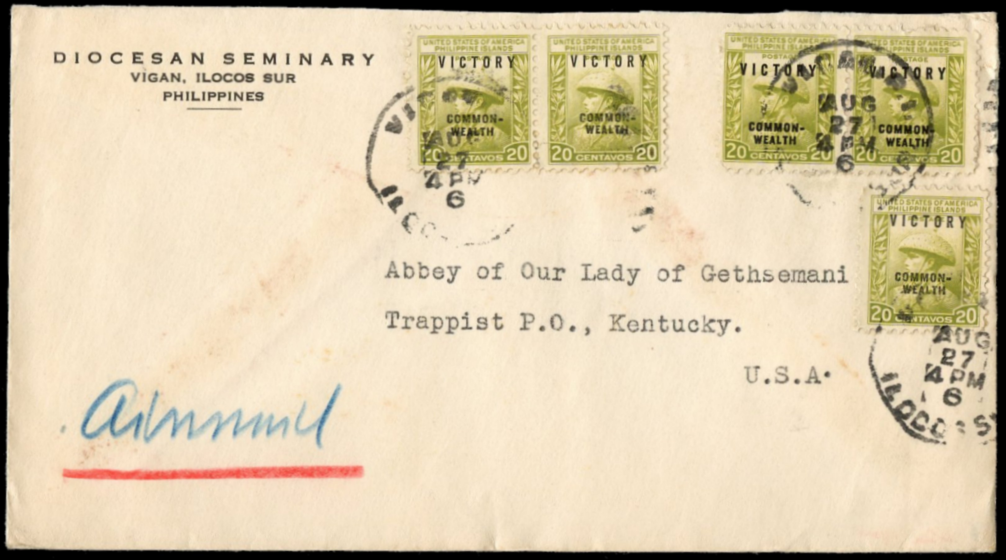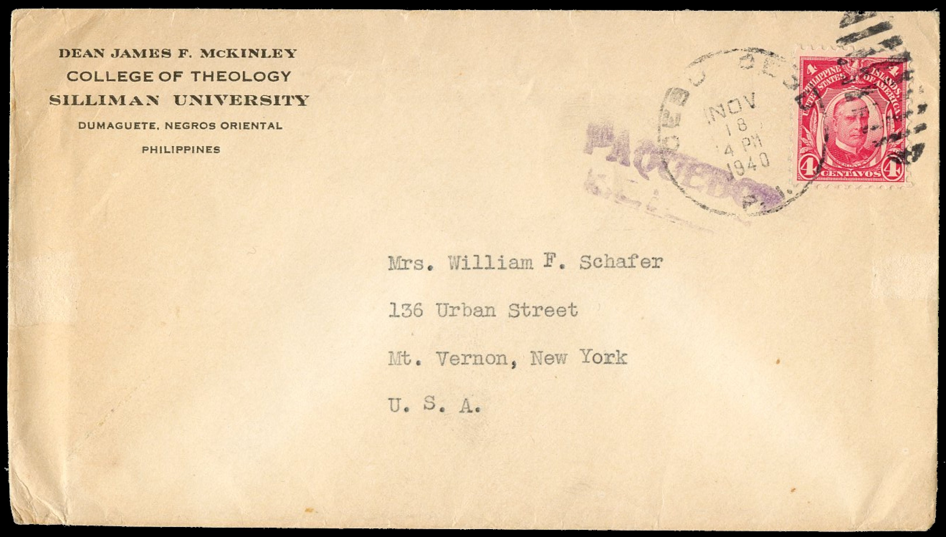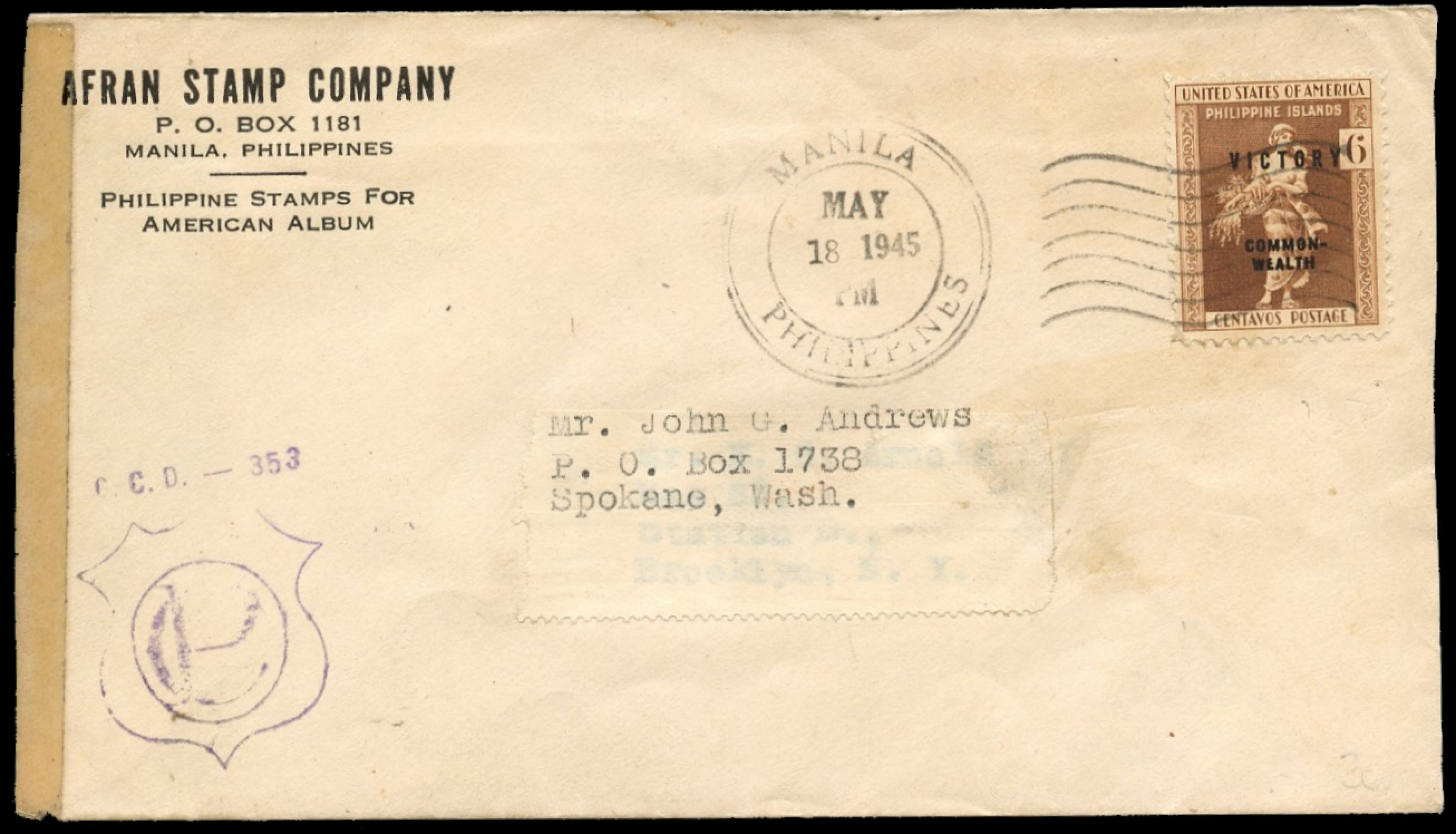 1938) Registration handstamp on front and reverse. Manila Post Office